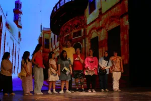 أقيم العرض المسرحي «1 شارع المعز» على خشبة مسرح الهناجر بدار الأوبرا المصرية، بحضور الفنان محمد رياض، رئيس المهرجان القومي للمسرح، والفنان عادل عبده مدير المهرجان، ومخرج العمل فيصل الشناوي، وسط حضور جماهيري كبير تفاعلوا مع الأبطال من ذوي الهمم.