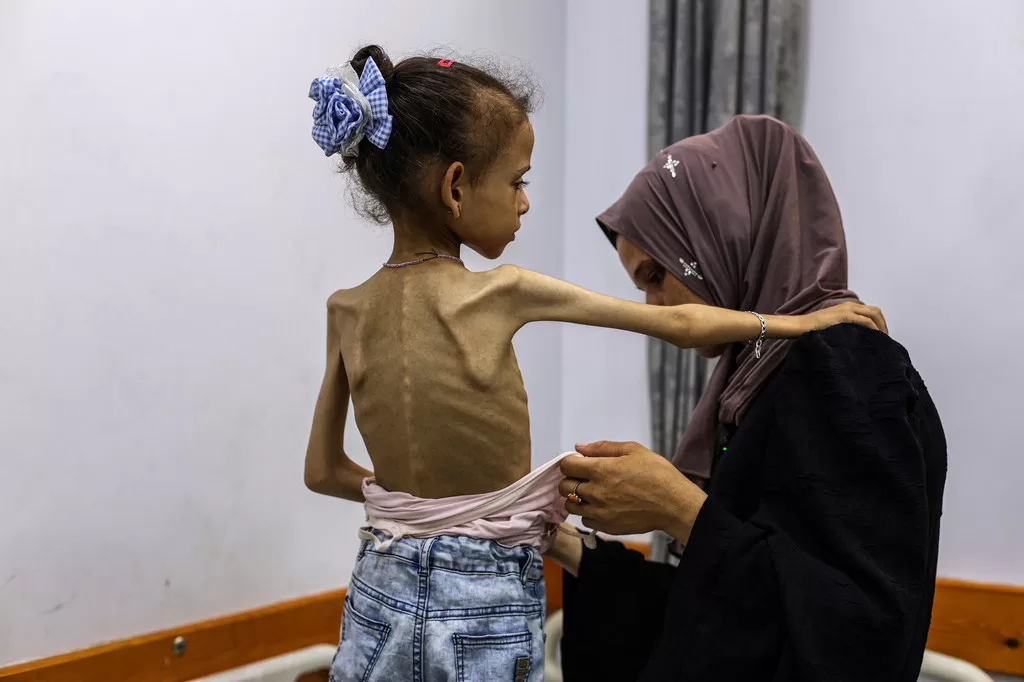 ووفق اليونيسيف فإن 470 ألف شخص في غزة يواجهون جوعا كارثيا (المرحلة 5 وفق التصنيف المتكامل لمراحل الأمن الغذائي)، كما يؤكّد البرنامج الدولي أن 71 ألف طفل غزّي يحتاجون وبشكل عاجل جدا إلى علاج لمواجهة سوء التغذية، رِفْقة قرابة 17 ألف أم يواجهن نفس المصير الكالِح.