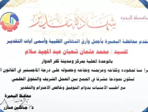 لم يمر إنجاز محمد دون تقدير، فقد كرّمته محافظ البحيرة ومنحه شهادة شكر لما حققه من إنجاز، كما تمت ترقيته من عامل نظافة إلى مشرف إداري داخل مجلس المدينة، في اعتراف رسمي بمثابرته وجهوده.