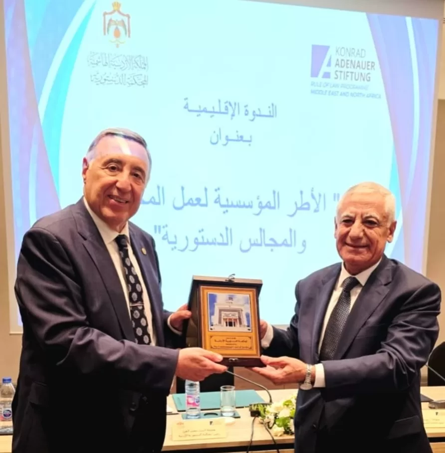 شاركت المحكمة الدستورية العليا المصرية برئاسة المستشار/ بولس فهمي إسكندر، في أعمال الندوة الإقليمية العلمية بعنوان (الأطر المؤسسية لعمل المحاكم والمجالس الدستورية) التي أقيمت على مدى يومي ١٥ و ١٦ أكتوبر الجاري بالمملكة الأردنية الهاشمية، تحت رعاية المحكمة الدستورية العليا بالأردن، ومؤسسة كونراد أديناور بالأردن، والتي تضمنت حضور رؤساء محاكم ست دول عربية هي: العراق، المغرب لبنان فلسطين الأردن ومصر. وقد شارك فى عضوية الوفد المصري ايضا المستشار د. طارق عبدالجواد شبل، نائب رئيس المحكمة الدستورية العليا المصرية.