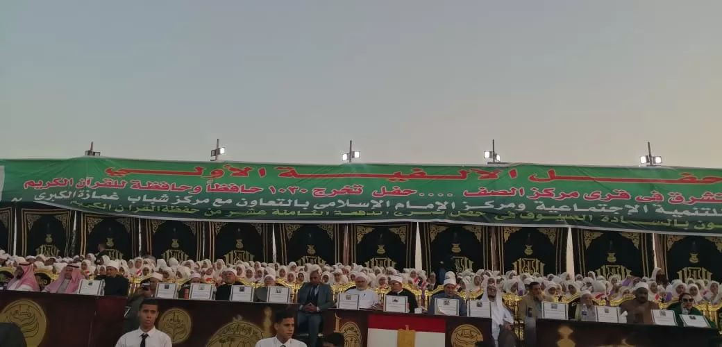 في احتفالية دينية وجماهيرية كبري نظمها مركز الإمام الإسلامي التابع لمؤسسة نماء برئاسة الدكتور عاصم أبوطالب عبد الكريم ، بقرية غمازة الكبرى بمركز ومدينة الصف محافظة الجيزة، تم يوم الجمعة الماضي حفلا حاشدا يحضره عشرات الآلاف من أهالي قرى المركز، وذلك لتخريج 1030 من حفظة القرآن الكريم في الدفعة الـ 18 من الحافظين للقرآن الكريم كاملا، ومنهم 56 سيدة فوق الستين من يد حفاظ القرآن من أبناء المؤسسة ليصل من ختموا القرآن الكريم كاملا منذ بداية المركز إلى 3350 وما زالت المسيرة ممستمرة ومتطورة ومباركة بإذن الله.