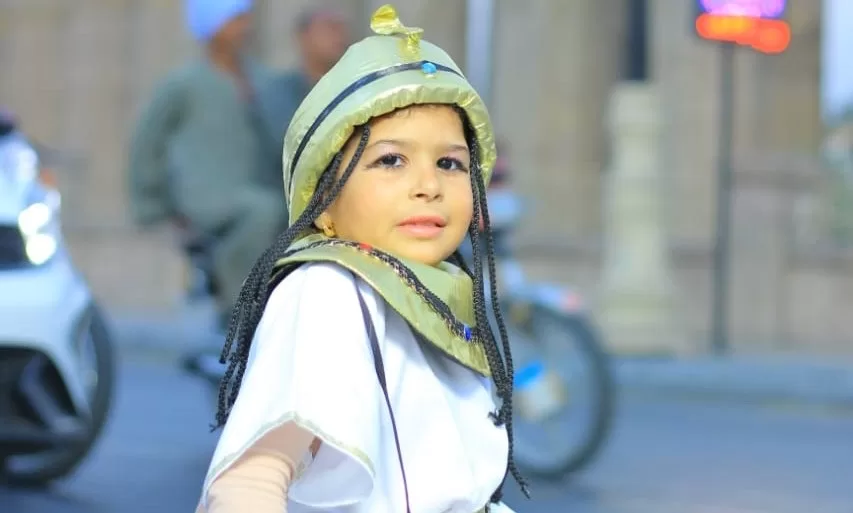 تلك كانت ابتسامة جويرية جمعة عبدالسلام، الطفلة الصغيرة التي خرجت من عباءة المرض لترتدي ثوب الأمل، زيًا فرعونيًا يعكس حضارة وطنها العريق، ووقفت بكل براءة وثقة وسط الجموع في ساحة أبو الحجاج، كأنها إحدى أميرات مصر القديمة عادت من صفحات التاريخ لتشهد الحدث العظيم.