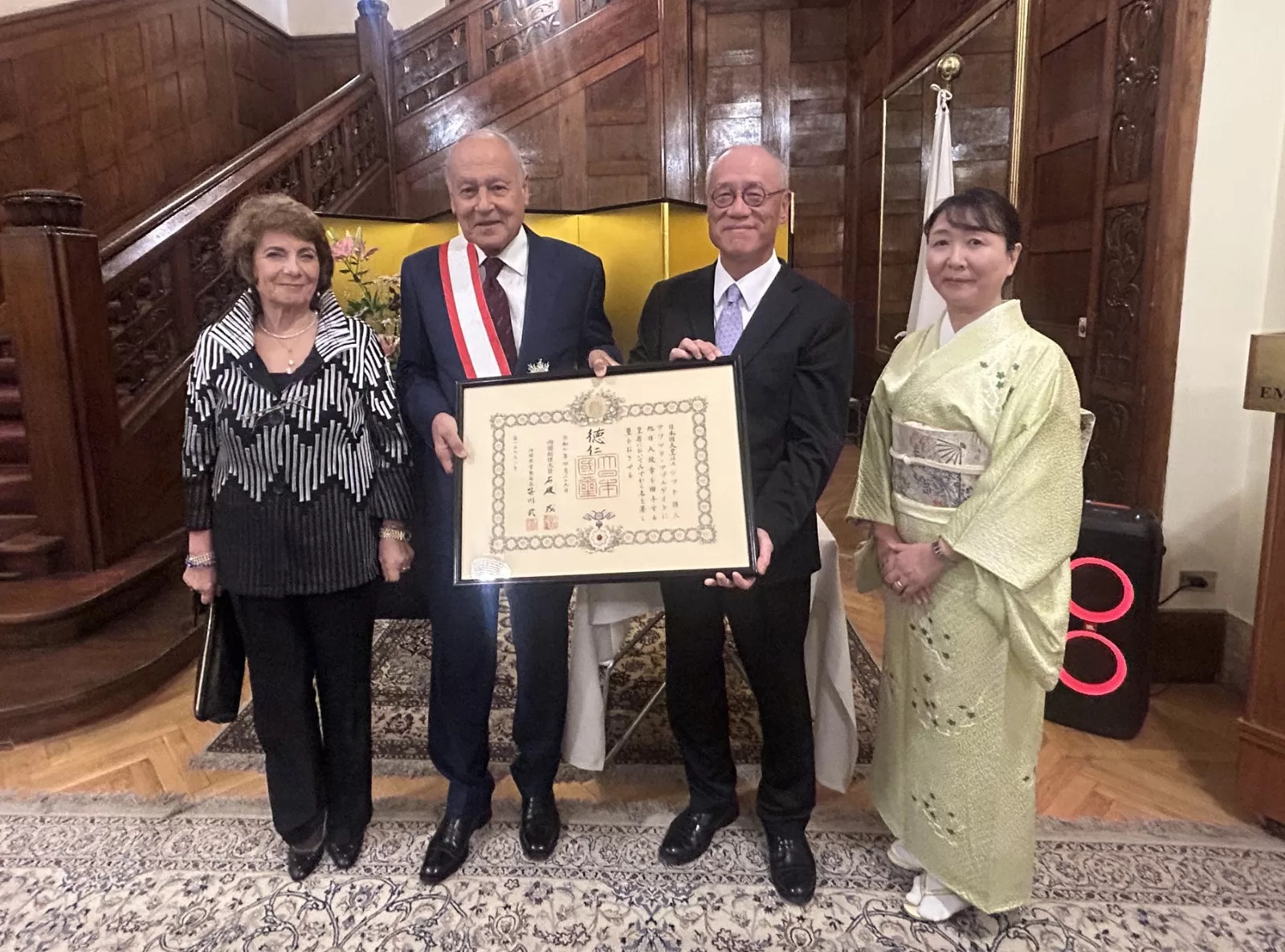 توَّج السفير إيواي- سفير اليابان بالقاهرة- السيد أحمد أبو الغيط- الأمين العام لجامعة الدول العربية- بوسام الشمس المشْرقة (الوشاح الأكبر)، فى احتفال موسع بمنزل السفير الياباني بالقاهرة، بحضور لفيف من الشخصيات المرموقة، في مقدّمتهم وزير الخارجية الأسبق، السفير محمد العرابي والسيدة حرمه، بالإضافة إلى الأصدقاء المقرّبين وأفراد العائلة.