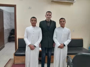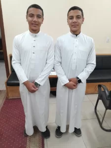 يستطرد: “منذ نعومة أظفارهما، وتحديدًا في سنّ الخامسة، كانا يحضران معنا جلسات الحفظ، والأسرة لم تكتفِ بذلك، أحضرنا لهما شيخًا متخصصًا ليكون معهما، تقريبًا طوال اليوم، ليعلِّمهما القراءة الصحيحة، وأصول النطق بالحروف الهجائية، وكيفية التلاوة السليمة. وبعد ذلك التحقا بالأزهر، وبدآ مشوارهما الدراسي حتى وصلا الآن الصف الثاني الثانوي الأدبي بمعهد عبدالمنعم رياض بحوش عيسى.”