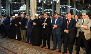 وعقب أداء الصلاة، قام الدكتور مصطفى مدبولي بتحية جموع المصلين، ونقل لهم تحيات الرئيس السيسي وتهنئته لهم بالشهر الكريم وقرب حلول عيد الفطر المبارك، وتمنيات الرئيس لجميع المصريين بأن يعيد الله عليهم هذه الأيام باليمن والخير والبركات..